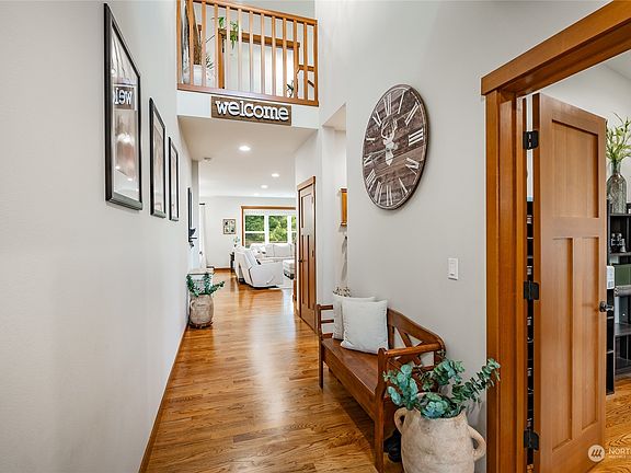 This stunning custom home has it all! Grand 2-story entry w/office, open floor plan with spacious living rm and gas fireplace, dining room & kitchen with granite counters, ss appls & walk-in pantry. Main floor features beautiful hardwood floors throughout! Patio doors open to large deck for entertaining and just steps away to the Hot tub and fenced backyard. Huge primary bedroom with double door entry, fully tiled walk-in shower, jetted tub, double vanity & walk-in closet. 2 more bedrooms + bonus room upstairs. Daylight basement is perfect for entertaining w/ a Theater room, wet bar, rec room, sauna and 4th Bd w/ensuite bath. 2-car garage +workshop area, shed in backyard and in-ground sprinkler system. Call today for your private viewing!