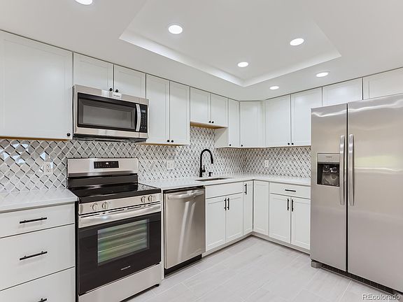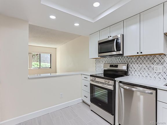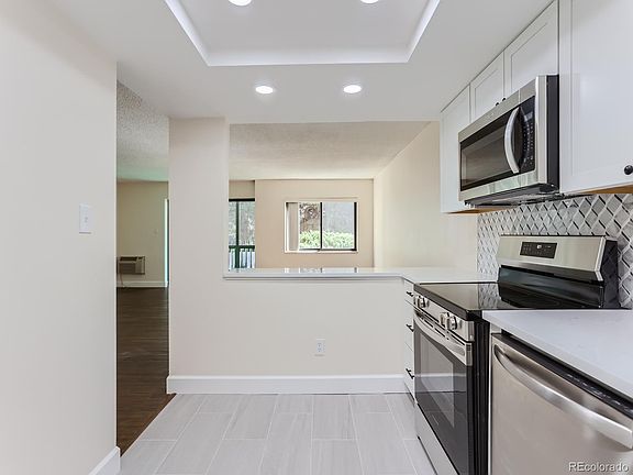 Discover the convenience of this first floor, single-level condo offering a stair-free lifestyle ideal for easy living featuring a Gorgeous Remodel! Here's your opportunity to be a part of the Heather Gardens community with this ground-floor 2 bedroom/2 bath, fully remodeled condo! It is a meticulously updated end unit, with large screened in patio hidden by mature trees & developed landscaping. Kitchen includes white shaker cabinets, brand new stainless steel appliances, quartz counters, brand new LED canned lights, sit-in bar for stool space and fresh tile flooring. A large living room with dedicated dining room space has plenty of room for entertaining and a brand new electric fireplace as a perfect centerpiece & boasts a brand new built-in dining room sideboard. The 2nd bedroom patio door opens to the patio making the room bright and cheery from southern exposure. The primary suite is 12x19 with an abundance of closet space and features an attached bathroom suite with radiant floor heating, great for Colorado winters! The in-unit washer/dryer is included making laundry a breeze & convenient with brand new cabinets. Located in a secure building and includes an under building reserved parking space (#39 WITH a cowboy storage locker) along with a storage closet down the hall for added benefit! The Heather Gardens Community features a 50,000 sq. ft clubhouse with restaurant, golf, indoor and outdoor pools, fitness room and so much more. Come be a part of this great 55+ active community today.