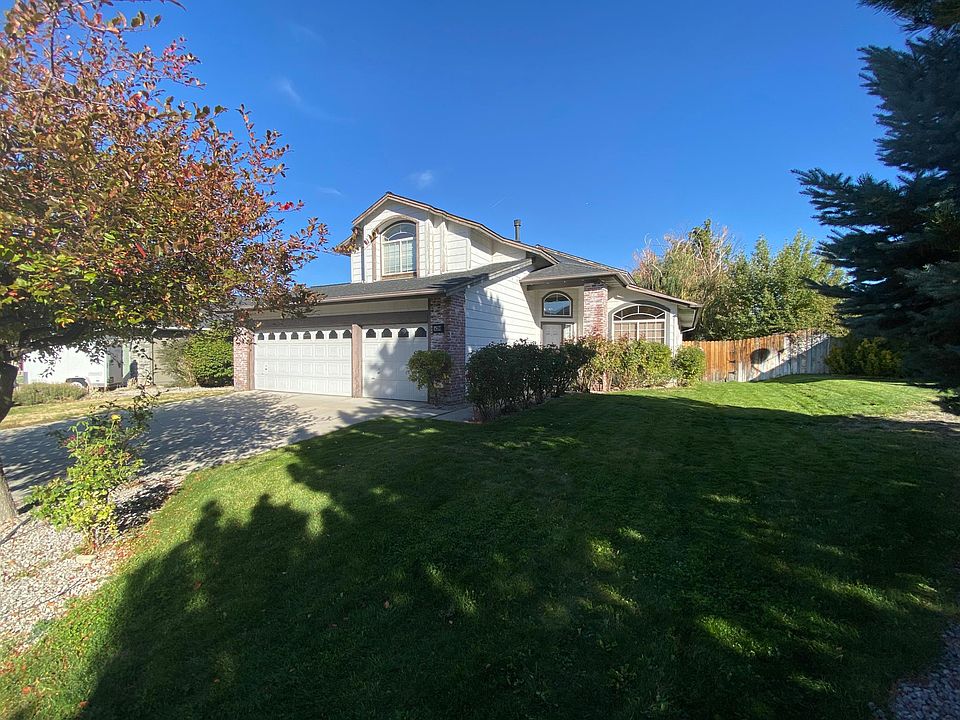 Must see this 4 bedroom 3 bath in Southwest Reno. New laminate flooring downstairs and new carpet upstairs. Newer paint and other updates throughout the home. Large private lot with lawn areas, trees, roses, and oversized rear patio. Home has forced-air heat, A/C, fireplace, Laundry room with deep sink, 3 car garage. Close to shopping, Mt. Rose Hwy. Easy freeway access. Tenant responsible for all utilities. No pets. You can also view this property on our website: