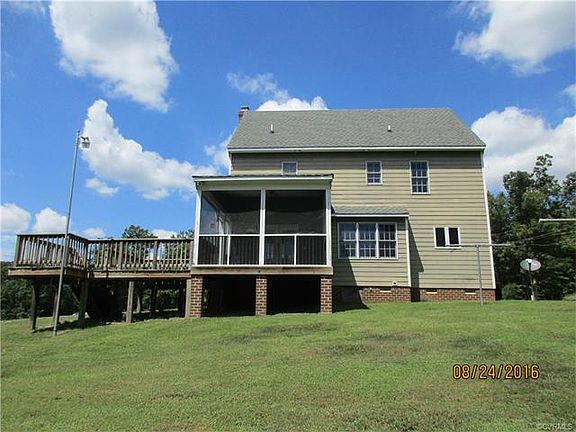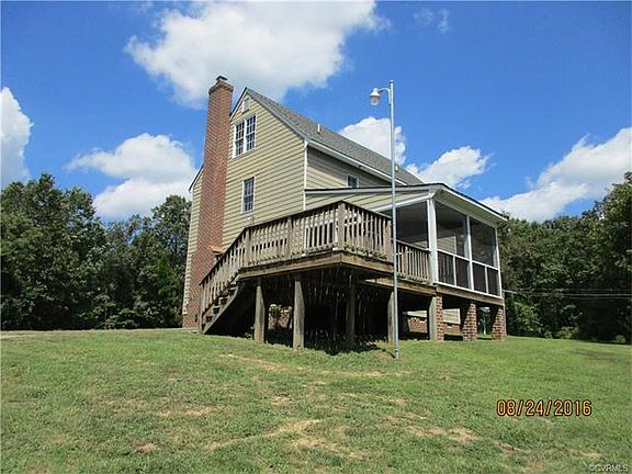 Welcome to country living in this 2 story colonial style home, on over 8 acres, located in Caroline County with a beautiful lake view. Interior features big kitchen with eat-in area, formal dining room, living room with brick fireplace and beautiful wood floors, wall to wall carpet upstairs, 3 spacious bedrooms, 2 full baths and a half, and a floored attic. Exterior features extra long personal driveway, providing privacy, home can not be seen from road, covered front porch, screened in back porch with additional outside deck and a view of the lake in back. Property sold "AS-IS" Property is now under Auction terms, seller accepting offers prior to auction, list price based on opening bid.