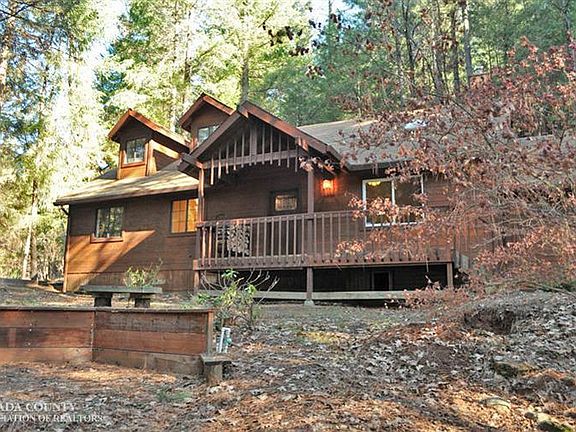 An updated Mountain Retreat with style awaits! Located on 5-forested acres and only 10 minutes to Grass Valley. Beautiful cedar siding is perfect for this secluded environment. The Great Room features vaulted wood ceilings & woodstove with raised hearth and transitions seamlessly to the oversized dine-in kitchen. The kitchen is updated with new S.S. appliances, touch-less faucet, lighting & Great pine cabinetry. Almost all newer flooring and updated baths. The master bath is quite large w/ double sinks and jetted tub. 3 bedrooms PLUS 2 bonus rooms* that could be used as bedrooms/office/recreation or media. Options for Gardening (at the top of the mountain) with appx 2 acres of flat knoll top Sunny brushed Private Land with Long Range Views. RV parking or shop may be possible (across the road) near the seasonal creek. Move in ready with recent remodel incl. local Doug Fir rough-hewn trim and new roof.