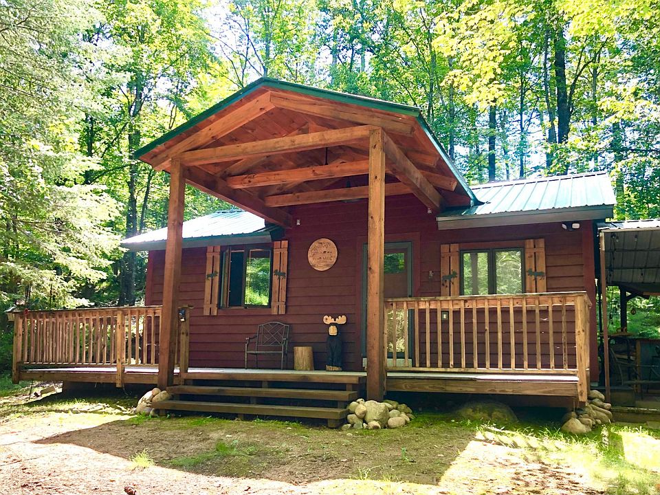 This year around 1 bedroom, 1 bathroom cabin has had the exterior meticulously renovated, showcasing a beautiful new wooden gable, including a ceiling fan & decorative lighting, situated on the composite deck. The pellet stove has been replaced with a new masonry gas fireplace, adding ambiance and warmth. Furthermore, the all-season she-shed currently accommodates an additional 4 guests. A covered deck with an outside bar and lighting spans just over 1 acre, while two supplementary sheds provide ample storage for UTV/Snowmobiles. The property's proximity to the fully recreational Wheeler Lake and ATV trails ensures endless entertainment opportunities.