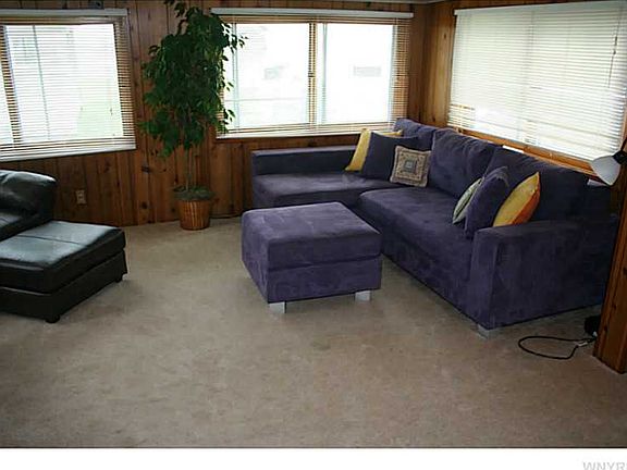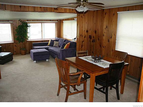 Make this property your full-time, year-round residence; or enjoy as a vacation home on Lake Ontario! Fulled furnished, move-in ready, and protected by 1-year home protection plan from American Home Shield. Complete tear-off roof replacement in 2010 and new hot water heater in 2014. Features a 320 sq ft detached lake view outbuilding and a detached garage for vehicle or boat storage! Short walk to restaurants and boat launch. Includes refrigerator, electric stove, microwave, bunk beds in each bedroom, cough and chairs in living room, and table with chairs in dining room.