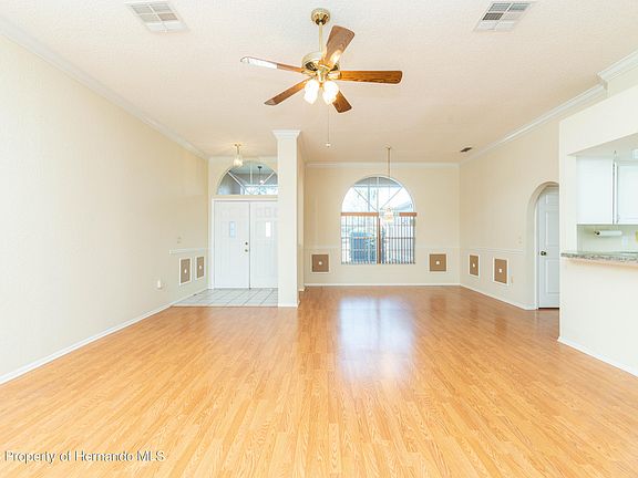 VACANT & READY FOR IMMEDIATE OCCUPANCY! Located in Barony Woods East, this 3 Bedroom, 2 Bath and 2 Car Garage Home offers a Great Room Floorplan with 1804 Living SF and 2692 SF Total. Some interior highlights include lots of easy-maintenance laminate flooring, crown molding, kitchen with solid surface counters and spacious breakfast nook. The master bath also contains HIS and HERS sinks, garden tub and separate shower. Exterior highlights of the half-acre parcel includes lush landscaping and a fully-fenced rear yard, complete concrete pad. Completed on 12/30/2022, a 4-Point Inspection is uploaded for review. HVAC 2012 and ROOF 2009. Local shopping and support services along Spring Hill Drive and Cortez Blvd (Rt 50) are within minutes. The Suncoast Parkway, also located within minutes of Nugent Street, offers easy access to Tampa International Airport and points south. CALL TODAY to Make Your Appointment!