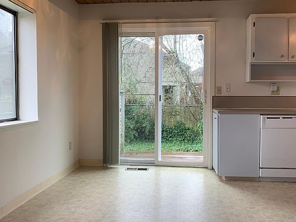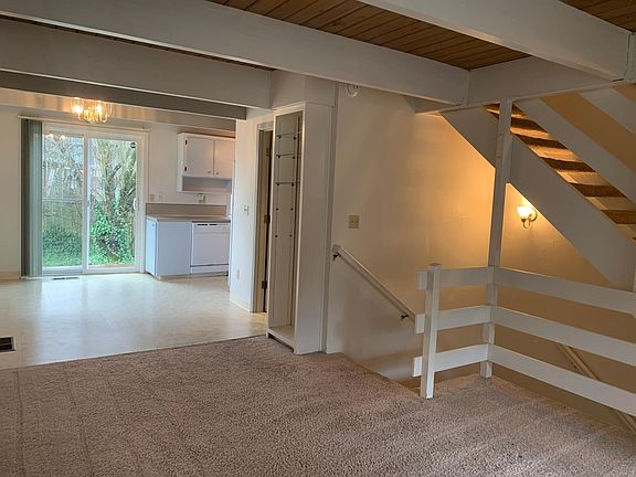 End Unit Townhouse Attached drive way and 1.5 car garage Full size washer and dryer hookups Mid century modern style with wood beam ceilings Modern Fireplace 3 decks off the unit Loft style main bedroom with walk in closet Central gas heating Tenant pays own utilities $50 screening fee per adult No dog pets please