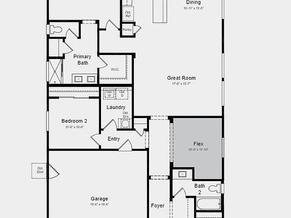 MLS#6637258 The single-story 35R2 Plan in Rio Vista at Rancho Mercado presents 3 bedrooms, a flex room, and a sought-after open floorplan. The main living area offers ample space for relaxation or entertaining. The beautiful kitchen features an island with bar-style seating, overlooking the spacious great room, dining area, and covered outdoor living space. The flex room can transform into a formal dining room or study. All 3 bedrooms are strategically spaced for maximum privacy. Unwind in the generously sized owner's suite located at the back of the home. The owner's bath includes dual sinks, a large walk-in shower, and a walk-in closet. Design highlights encompass 36" upper kitchen cabinets with crow molding, 8' interior doors, appliances, paint and more! Structural options added include: Pavers at front porch, driveway and entry, flex room in place of bed 4, garage service door, alternate A/C location and soft water loop.