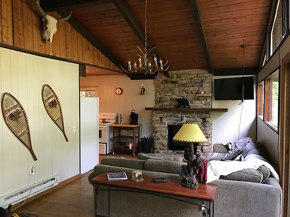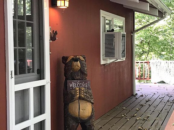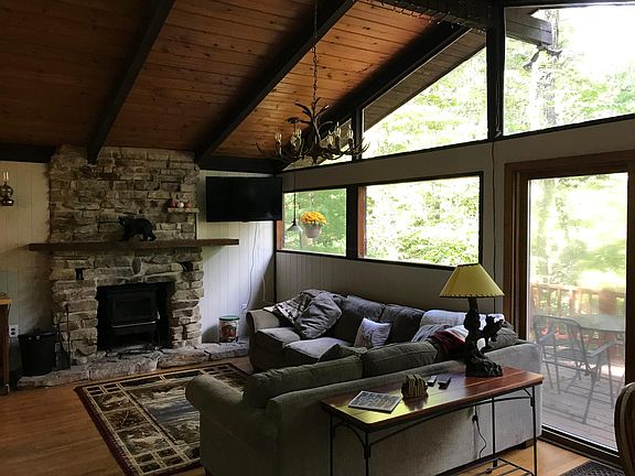 Cozy 2bed, 1 bath cabin can continue to be used as an AIRBNB, personal vacation home or residence. Newer roof, (2018) updated bathroom vanity, double oven and furnishings. Beautiful wrap around deck for gatherings and cook-outs. Enjoy the winter nights around the wood stove. Completely turn-key. Showings begin 12/29/2021