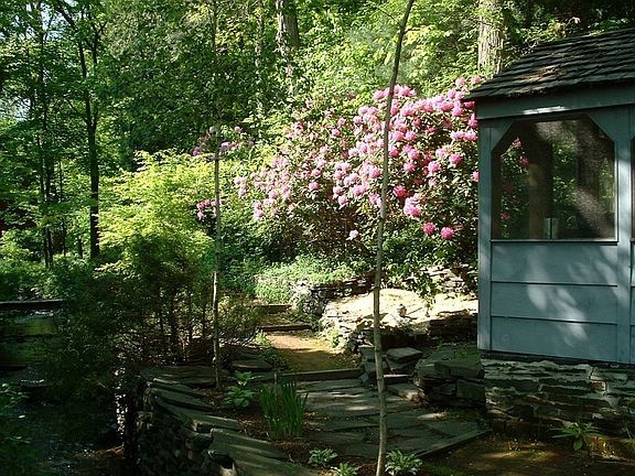 EXTRAORDINARY EYEBROW COLONIAL HOME NESTLED AMONG THE BANKS OF THE KRIPPLEBUSH CREEK. WALK ACROSS THE PRIVATE BRIDGE TO YOUR NEW HOME, STOPPING TO SIT ON THE BUILT IN SEATING OVERLOOKING THE STONE WALLED CREEK. YOU WILL FEEL LIKE YOU'RE IN EUROPE WHILE YOU STROLL ALONG THE BEAUTIFUL BRICK WALKWAYS & WALKING BRIDGES, ENJOYING THE SPECTACULAR LANDSCAPING AND THE CALMING SOUND OF THE CREEK RUNNING UNDER FOOT.GUESTS CAN CHOSE FROM DINING IN THE LOVELY SCREED PORCH OVERLOOKING GARDENS, BRICK PATHS & THE CREEK OR ON THE LARGE ROMANTIC BRICK PATIO IN THE COURTYARD LIKE SETTING BETWEEN THE MAIN HOUSE & THE STUDIO. THIS PROPERTY OFFERS PLENTY OF ROOM FOR EVERYONE- YOUR FRIENDS & FAMILY, WITH A SEPARATE GUEST HOUSE,& AN ADDITIONAL BUILDING PERFECT FOR AN OFFICE OR STUDIO. THE CHARM & COMFORTS ABOUNDING IN THIS HISTORICAL HOME ARE UNPARALLELED. THERE IS NO OTHER HOUSE QUITE LIKE THIS.COME & SEE FOR YOURSELF