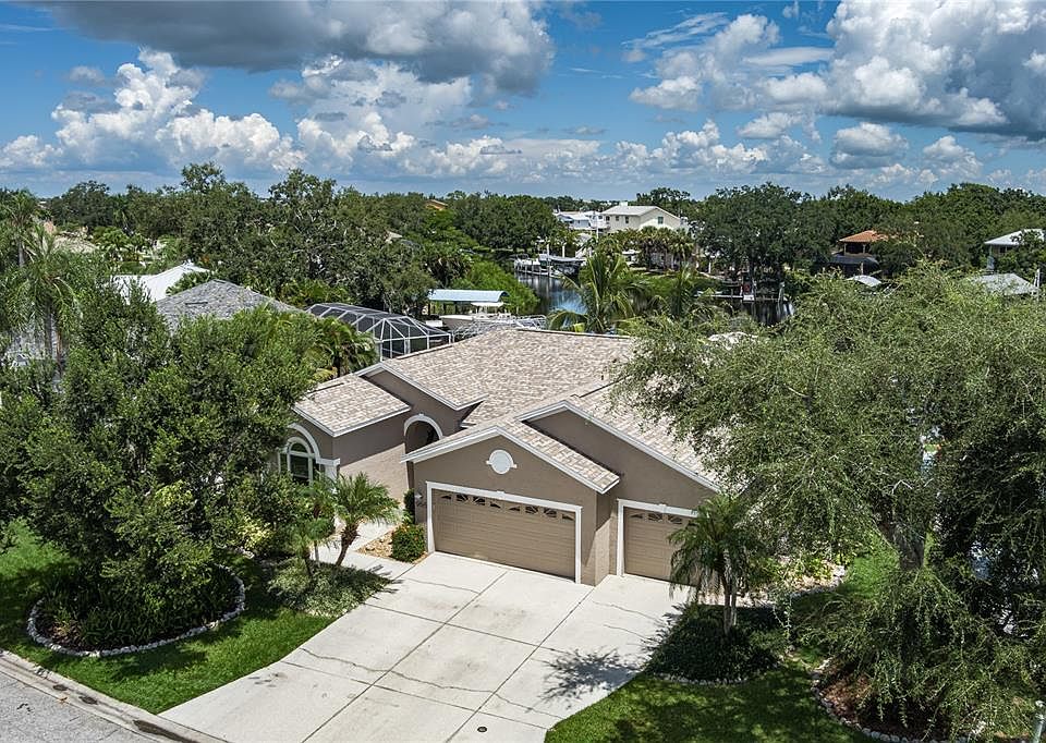 Screened lanaiCovered liftWide saltwater canalModern homeHigh ceilingsExpansive paver deckCovered entertaining area