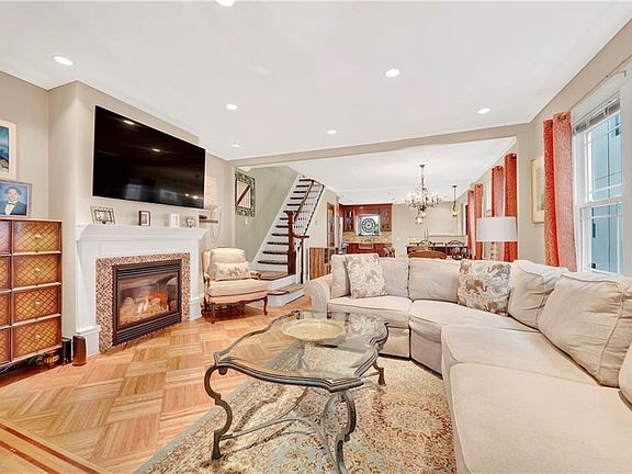 Welcome to this Lovely Fully Detached 3 BR Home with Highly Coveted PRIVATE DRIVE! Nestled on a quiet tree lined street in the heart of Bay Ridge, this meticulously landscaped exterior leads to a first floor which has been redesigned with a sleek open concept. The modern living room features a remote controlled gas fireplace, recessed lighting, parquet floors and the airy ambience of windows everywhere you look! Next there is a formal dining room and kitchen with rich wood cabinets, granite countertops and an nice sized island perfect for family get togethers and/or an ideal spot to work from home. From the kitchen there are steps with easy access to the patio and garage. The second floor has three bedrooms, nice closet space and an eye catching contemporary bath with elegant fixures and tub with seamless glass shower door. There is an attic with pull down ladder for organization & storage needs. And the basement is fully renovated with a Recreation/Exercise Room, 3/4 bath & Laundry Room. You will enjoy the serenity and down time in the private back patio area equipped with an above- ground pool for all those hot summer days and evenings! Another great perk is the ability to park multiple cars in your personal driveway!! This ideal location is close to all transportation, supermarkets, restaurants & shopping. Truly a must see!