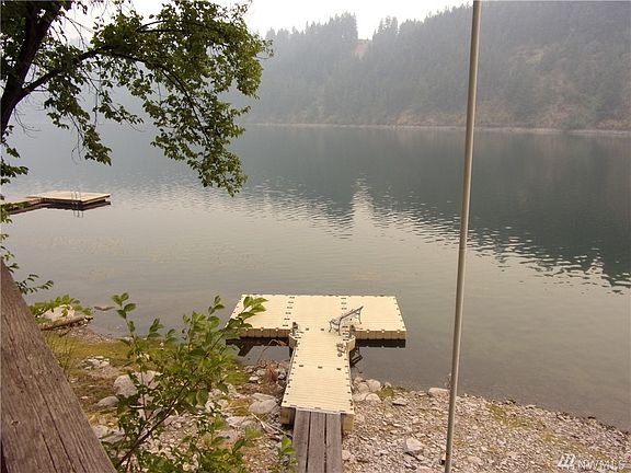 Conconully Upper Lake - Incredible view of Lake and Mountains - Enjoy wildlife, boating, fishing, 4 wheeling, snowmobiling, and 2 local restaurants plus small market and gas station. Cabin features kitchen with appliances, 2 bedrooms/1 bathroom, stackable washer/dryer, and living room with wood stove. Furniture stays. Large back deck plus lower deck closer to the water. Floating dock. Storage area under the cabin that is unfinished. Leased ground. $84,900 MLS1350156/H-2644