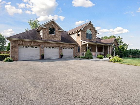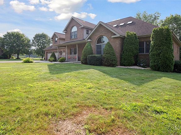 All-brick custom home on one of the largest, flattest lots in the neighborhood! A heated 3-car garage, extra-wide driveway, & covered front porch welcome you in. The soaring 2-story great room features a gas fireplace w/stone surround, & an open balcony overlook. The kitchen offers ample cabinetry w/ pull-out pantries, a center island, built-ins, all appliances, plus a sunny bump-out breakfast area that opens to the backyard. 1st-floor owner’s suite includes a large walk-in closet, bath with jetted tub and separate shower. The main level also boasts a spacious laundry, formal dining room, powder room, and a large den w/vaulted ceiling. Upstairs are 3 generous bedrooms, a full bath, & a walk-in attic for bonus storage or future living space. The massive basement w/ fireplace and bath/bar rough-in is ready to be finished. Backyard oasis with 2 pergolas, a fenced in-ground pool, & hot tub hook-up. Real hardwood floors, oak trim, underground pet fenceing also included.