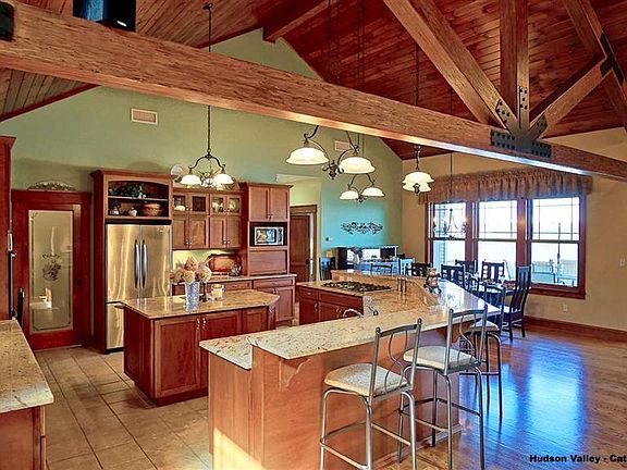 Enjoy magnificent Hudson River views in this artfully elegant home offering the finest in luxurious comfort and serenity while only 90 minutes from NYC. Watch Hot Air Balloons, Fireworks, and Sail Boats float by while relaxing on the enormous sundeck overlooking the river in this custom Arts & Crafts Contemporary. Close to the village shops and restaurants, 10 minutes to Metro North and a short ride to many outdoor adventures such as rock climbing and mountain biking, this River oasis is perfectly situated for any lifestyle. Entertain your family and friends in the expansive 30 x 40 foot Great Room with 16ft high wood ceiling, structural hand stained wooden beams, fireplace and stained glass lighting. Enjoy cooking and spending family time in the gorgeous gourmet custom cherry kitchen which has 2 ovens and a 5 burner cook-top, microwave, dishwasher, center island with 2nd sink, counter seating for 7, and granite countertops. The open dining area allows for plenty of seating with clear Hudson River views. Relax in the master suite featuring river views from two directions, gas fireplace, luxurious soaking tub, double vanities, heated shower, walk in closets and dressing room. There are 6 additional rooms: 3 bedrooms all with on suites as well as an office and a bonus room which could be use as a 5th guest bedroom, game room, sewing room or additional office. If that wasn't enough space, consider enjoying your evenings watching movies or listening to music in the large family room with fireplace, river views and French doors out to the garden area. On top of the 4947 square foot house, the property also features a 3 car garage for the auto enthusiast. One a the few homes that offers Hudson River views from every room, a peaceful and serene setting while conveniently located to commuter trains, the thruway, local village life and the great outdoors of the Hudson Valley.