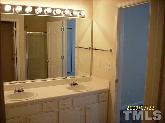 First floor master bedroom with garden tub and separate shower. Three bedroom home in Breckenridge in Morrisville off Davis Drive. Large spacious kitchen with gas range. Gas log fireplace in family room with vaulted ceilings. Neighborhood has community pool and tennis courts with walking trails and large playground. Great RTP location