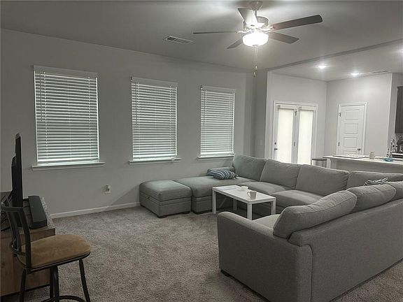 For Lease This elegant 3-bedroom, 2.5-bath Greenbrier floor plan is located in a highly desirable community with easy access to shopping, dining, grocery stores, and major routes including GA-400 and Hwy 53. The upper level features a spacious owner's suite, two additional well-sized bedrooms, two full baths, and a versatile loft ideal for entertainment, gaming, or relaxation. Craftsman-style open railings on both levels add charm and character throughout the home. The modern kitchen is designed with 36-inch upper cabinets, quartz countertops, LED lighting, and stainless steel appliances, including a microwave with exterior venting. The owner's suite bathroom offers a spa-inspired retreat with a 42-inch tiled shower, a fiberglass garden tub, and a quartz vanity. Positioned on a desirable north-facing corner lot with a large yard, this home offers thoughtful upgrades, timeless design, and everyday convenience !