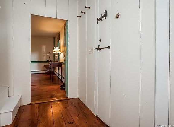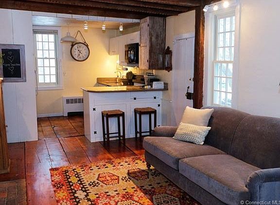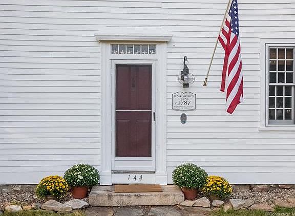 This is a rare opportunity to own the completely restored antique home known as the Jesse Brown House (ca. 1787). From the revolutionary era, Jesse Brown was a soldier, farmer and merchant. Set on a flat ½ acre corner lot with mature trees and stone walls, the house features a massive center chimney with a secret spiral staircase and six working fireplaces with separate flues and dampers. The keeping room has original exposed beams, freshly refinished original wide-board floor, an oversized hearth cooking fireplace with beehive oven, and a modern kitchen with granite counter tops. The formal parlor and dining rooms have lovely original paneling and period mantels over the fireplaces, chandelier does not convey . The wide-board parlor floor was recently refinished. There is a half bath/laundry room on the first floor and two full baths upstairs. Each of the three 2nd floor bedrooms is nicely sized and has a fireplace. The 3rd floor features an extra bedroom/office and large storage area. Updates include: new roof and furnace; restored under-structure; modern wiring and plumbing; completely restored and sealed chimney with all flues lined; plaster walls with energy efficient insulation; all new thermal double-pane windows with screens; freshly painted inside and out. Enjoy the historical features of this turn-key antique without giving up modern conveniences. The house is a short walk to Esker Point beach and Haley Farm, a 267 acre state park. This is a truly remarkable home.