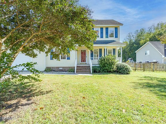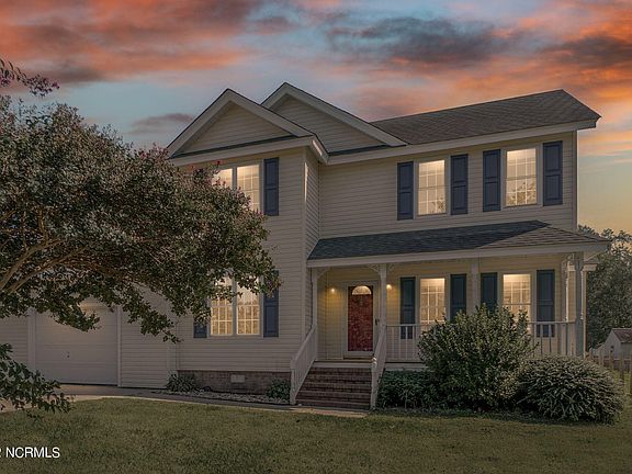 Traditional 2 story home located near the Currituck sound in Moyock. This house is not part of the POA in Brumsey Landing so the possibilities are endless! Charming front porch, that welcomes you into the spacious LR with gas fireplace, and LVP flooring. Formal DR with kitchen and eat in area. Kitchen features solid wood cabinets and white appliances. Huge FROG with ac unit that will convey. Laundry room with washer and dryer. Backyard is fenced in with shed and a blank slate. Near Knotts Island Ferry near Currituck. Put your touches on this wonderful house and make it home!