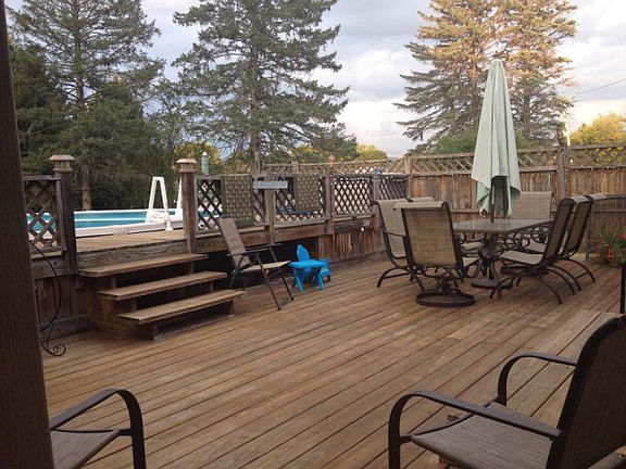 Country feel with all the amenities of living in town. Wonderful Cape on a large one acre lot. Owner has remodeled everything, house is move in ready. House boasts plenty of storage and a great floor plan for entertaining. Lots of outdoor living space includes wrap around front porch, three season room and a large deck with a grilling area that leads to pool. Primary heat is natural gas but included is an outdoor wood furnace for an alternative heat source. Finished basement and a first floor laundry are just a couple benefits of this house. Listing agent is related to sellers