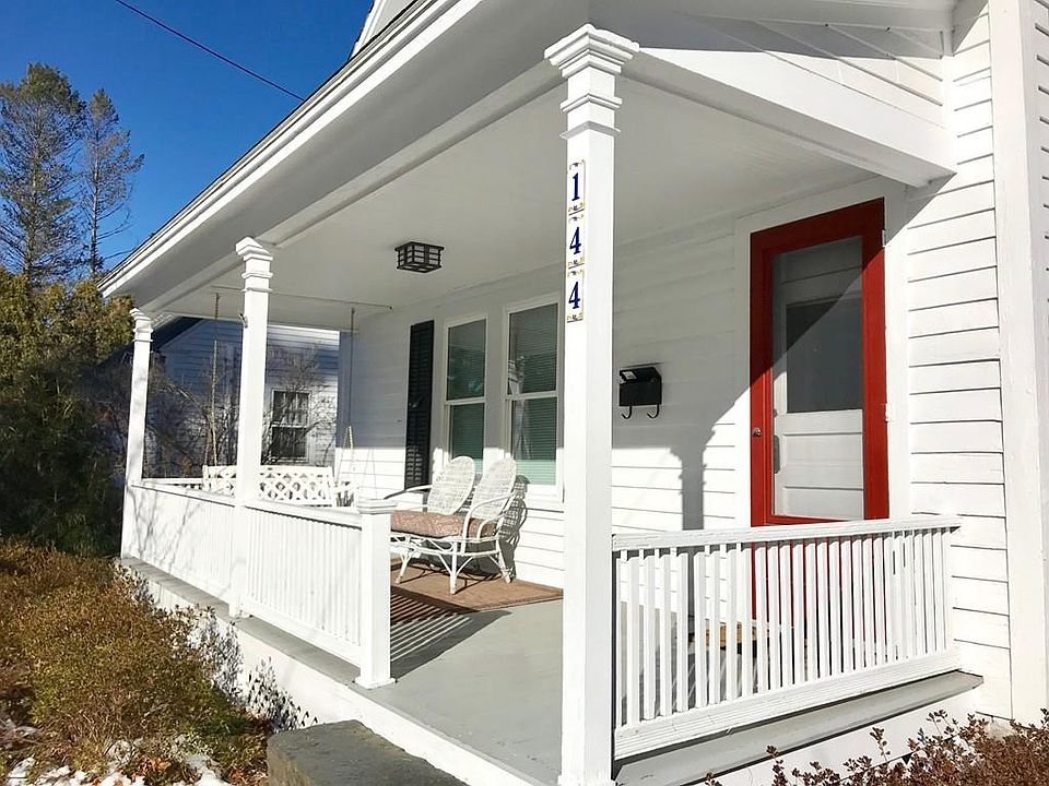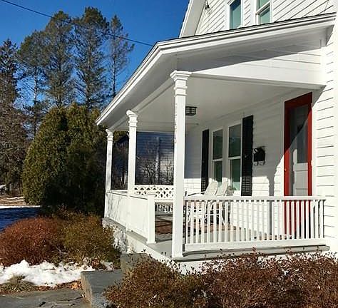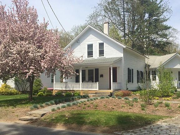 Within walking distance of town center and area schools, this enchanting home will not disappoint! Tucked on a .42 acre open lot with stunning landscape, the front porch transports one to days gone by, while the handsome brick patio is ideal for summertime get togethers and BBQ's. A beautiful goshen stone walk leads to the warm, welcoming floor plan inside. Remodeled kitchen with center island and vaulted ceiling are optimal and are open to the dining/living room. A plethora of light streams in throughout the day, you'll never want to leave! First floor bedroom with full bath a plus. Second floor includes 2 bedrooms and a bath with laundry. A rare opportunity for those wanting it all! A charming place to hang your hat!