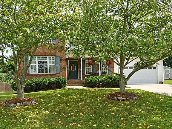 15 minutes away from Hanes Mall and downtown, in ever popular Friedburg Elementary zone, this home has a lot to offer! Welcoming covered porch and spacious foyer. Hardwoods in entry, dining room and den. Main level office could double as a sitting/living room. Depending on your needs, 4th bedroom could become a playroom. Nice wood blinds throughout. Woods and common area to rear maintain privacy & huge activity field is great for neighborhood football games!