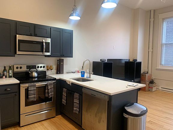 Enjoy this open floor plan 2 bedroom 1 bath unit featuring hardwood floor floors, entry way coat closet, eat in kitchen with plenty of cabinets, stainless steel appliances, granite counter tops and overhang bar. Living room with cable hook ups. 1 Full bath with ceramic tile. Private back deck with city views! ~Appliances include: range w/oven, refrigerator, dishwasher and microwave ~Washer/dryer in unit ~Cable and internet package: $55/mo. Total rent would be $1,380/mo. ~Pet Friendly! *Conditions Apply ~Central Air ~Gas and Electric Separate