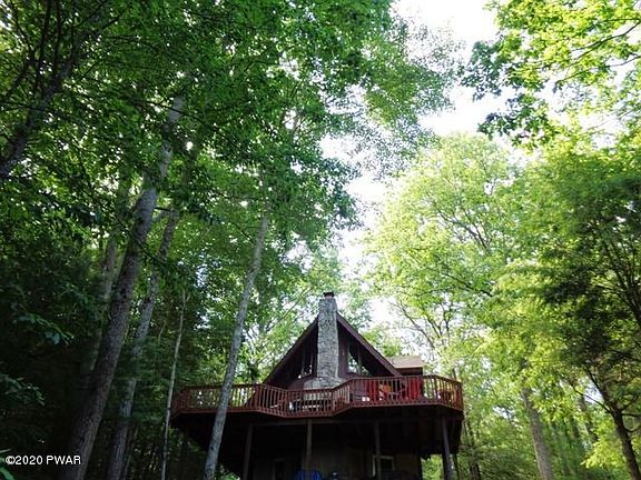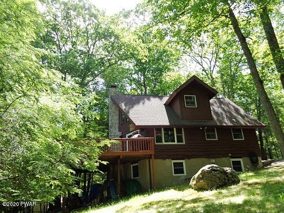 Lake Rights, Lake View, Move in Now, Renovated Ready! Prow Front Chalet, nestled in the woods on over an acre bordering golf course. Open design, granite counter tops, pantry, 3 stone fireplaces, Walkout LL with custom bar and entertainment area, also workshop/laundry/and storage area. Circular driveway with night lights. Extra large entertaining deck w/outdoor fireplace. Boat launch, beach and picnic area on motor boating Lake Wallenpaupack. Additional private lake for canoeing and kayaking. Low taxes. Commutable distance from NYC and other major metro areas. See virtual tour