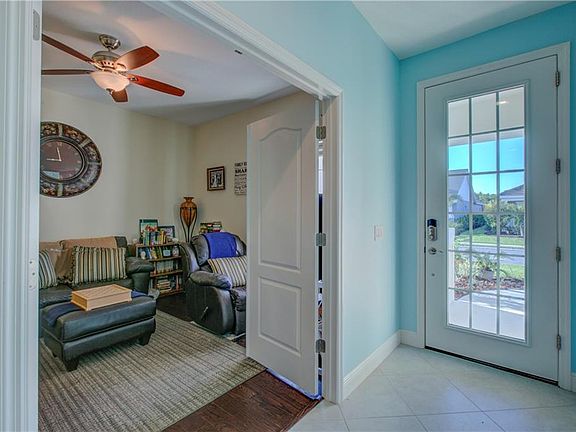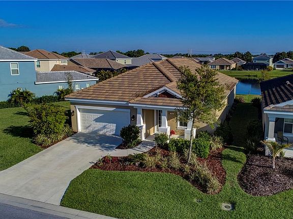 The 3 bedroom, 3 bathroom with a 13 x 12 den/office "Applause" model by Neal homes is one of only 90 homes in this gated community that is very close to restaurants and shopping. The home is 3 years new and has a tile roof and is located on a $40,000 lot upgrade with the beautiful lake as your backyard. You will notice the tall ceilings as soon as you enter this wonderful home and all of the rooms are very good size. Bedroom 2 is en-suite which is excellent for guests or multi generation homeowners. The open floor plan is set up with a large great room and a stunning kitchen with a center island and sink with storage underneath and a very nice size pantry in the corner. The eating area has a perfect view of the large lake. The huge 19 x 13 master bedroom enjoys the lake view and has plenty of room for a sitting area. The laundry has a sink for your convenience. Water for irrigation is sourced from the lake. Great access to I-75, the beaches and restaurants and shopping. Wonderfully decorated and is definitely move in ready. Please click on the link above to watch the 3D tour of the entire home.
