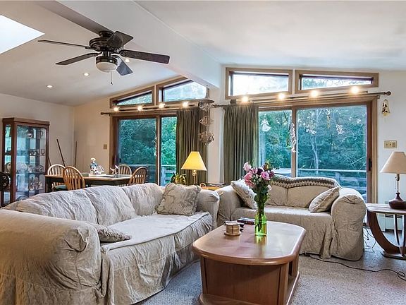 Ranch home in Ashaway on 2 acres with in-ground pool. 1st floor open living, with Kitchen/Dining Area/Living Room w/propane fireplace. A wall of sliders affords wooded views and out to the deck. There are also 3 bedrooms and 2 baths on main floor. The walk out basement adds family room, office and play room, and another full bath. Storage and laundry room too. The house, grounds and pool require some TLC but single level living on 2 acres just 10 minutes from Rte 95 is well worth the effort.