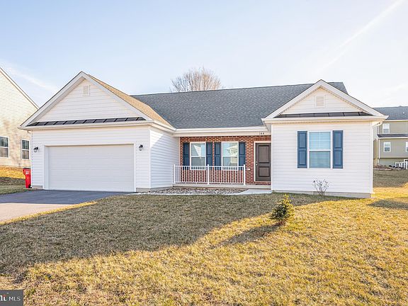 Welcome to 144 Constellation Road, a charming ranch home located in the desirable Stoney Ridge community of Inwood. Built in 2021, this modern ranch-style residence offers 1,800+ square feet of comfortable living space, featuring 3 bedrooms and 2 full bathrooms. As you step inside, you'll be greeted by an open-concept floor plan adorned with vinyl plank flooring throughout the main living areas. The spacious family room boasts a cozy gas fireplace, perfect for relaxing evenings. The kitchen features granite countertops, a central island, pantry, and stainless steel appliances, catering to all your needs. Adjacent to the kitchen is a formal dining area, ideal for hosting gatherings. The primary bedroom suite offers a tranquil retreat with a walk-in closet and an en-suite bathroom featuring a tiled shower. Two additional bedrooms provide ample space for family or guests. Outdoor features include a welcoming front porch with brick accents and a two-car garage. Extend our living and entertaining space to the generous backyard space with large concrete patio. Conveniently located near schools, shopping, and major commuter routes, 144 Constellation Road combines modern living with a touch of country charm, making it the perfect place to call home.