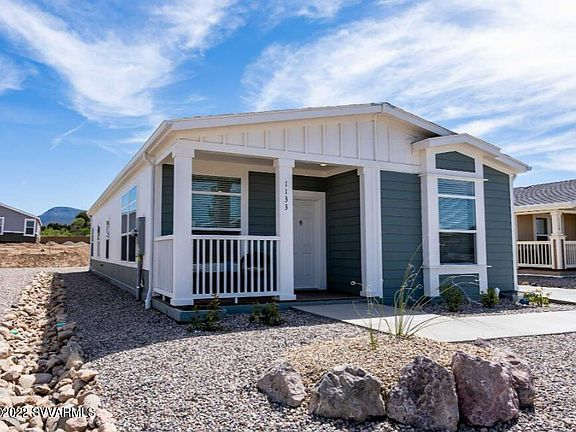 Welcome to Verde Ranch Estates largest model . Escape to the Verde Valley and be close to the river. This Home is special with its coffered ceiling, his and hers sinks in the master bath, spacious kitchen and large great room. The three-bedroom two bath has 9 foot ceiling that feels really spacious. The Refrigerator, Dish Washer, Range and Microwave are upgraded Stainless Steel. All owners have full access to all the Estates amenities including the pool and hot tub. Your safety is paramount with every resident is required to pass a background check. Listing price includes tax and closing costs for a cash buyer. Land Lease is 535.50 month with tax. The friendly staff at Verde Ranch estates can provide buyers with updated costs for the covered carport and fenced back yard.