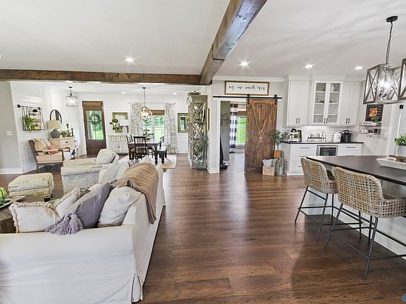 Stunning 4 bedroom / 2 bath farmhouse situated on 70 acres on top of the mountain with approximately 1600 feet of bluff as the eastern border. Home boasts an open floorplan with kitchen and walk in pantry. Expansive master bedroom with walk in closet and en suite bathroom. Back porch and patio with fire pit make perfect spot to enjoy the serenity of your property. Home has potential 5th bedroom upstairs as well as rough plumbing to add a 3rd bathroom in upstairs rec room. Expanded 2 car attached garage. Property has about a half acre pond as well as a stream that runs along the northern side of the property.