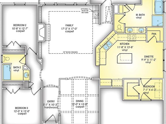 1 story home with entry, dining with coffered ceiling, large family room with upgraded deluxe kitchen with large island, upgraded white cabinets, upgraded white subway backsplash, Luna Pearl granite countertops in Kitchen and baths and an eat in area. Mud room located off garage. Owners Suite tray ceiling and large walk in closet, double sinks, garden tub and separate shower. 2 additional bedrooms and full bath. Upgraded Shaw luxury vinyl in Galveston Oak in great room, kitchen, dining, halls, foyer, laundry and bathrooms. Large included covered back porch!! Disclaimer: Pricing continually fluctuates on upgrades and selections. Listed price may need to be adjusted at time of contract to accommodate these changes. EXPECTED COMPLETION DATE IS SPRING 2022. STANDARD FEATURES GreenSmart Home Energy & Automation Features R50 Blown Attic Insulation Thermal Envelope Air Sealing Advanced Framing Techniques Tankless Gas Hot Water Heater (per Neighborhood) Energy Efficient 14 Seer Gas HVAC Programmable Thermostat Low VOC Sherwin Williams Paint & Carpet High Performance Low E Tilt Out Windows LED Bulbs in Light Fixtures Moen Water Sense Shower Heads & Sink Faucets Energy Star Stainless Appliances (dishwasher, microwave & smooth top range) Stylish Insulated Front Door (per plan) Insulated Exterior Doors (per plan) HERS Energy Testing & Third Party Rating CO2 Carbon Monoxide Detector on each floor Smart Features through iDevices Architectural Features 9 Ft Ceiling Downstairs Crown Moulding in Dining Area Oak Handrail (per plan) Kitchen Designer Staggered Height Cabinets with Crown Moulding Designer Hardware Granite Countertops 3cm Gas Line and 110V at stove for opt. gas apps Energy Star Dishwasher, Microwave and Smooth Top Range (stainless) Moen Faucet with Sprayer Garbage disposal Owners Suite Comfort Height Vanity Cabinet Granite Vanity Top 3cm Moen Single Lever Sink Faucet(s) Low Maintenance Fiberglass Garden Tub/ Shower (per plan) Clear Shower Glass Door (on separate showers) Elongated Toilet Framed Mirror Paper Holder (Mason) Secondary Baths Comfort Height Vanity Cabinets Granite Vanity Tops 3cm Elongated Toilets Moen Single Lever Sink Faucets Pedestal Sink in Half Bath (per plan) Framed Mirrors Paper Holders (Mason) Interior Features Recessed Lighting (per plan) Up to Six (6) Cable and/or Phone Outlets Nickel Lighting in main living areas, Locks & Hinges Chrome faucets and bath vanity lights, and bath hardware Ceiling Fan with Light Kit in Family Room & Owner’s Suite All Secondary Bedrooms Pre-Wired for Ceiling Fans Flooring Designer Vinyl in Kitchen, Bathrooms & Laundry Area Carpet in Living Spaces (per plan) LVP in Foyer(per plan) Exterior Features 30 year Architectural Shingles Lifetime roof pipe vents Brick, Vinyl or Stone Accents (per elevation) Garage Door Opener with Two (2) Remotes Carriage Garage Door(s) with Carriage Hardware Paint Ready Garage Low Maintenance Vinyl Siding Low Maintenance Aluminum Fascia & Vinyl Soffit Flood Light Pre-Wire to Attic Junction Box Outdoor Living Space - Patio (per plan) Landscape Package per community Fully sodded yard with automatic irrigation Sentricon Termite Control by Home Pest Carriage Lights All Homesites tested for structural bearing capacity Double Driveways 1-2-10 Home Warranty from StrucSure Warranty Group 1 Year Warranty on Workmanship 2 Year Limited Warranty on Plumbing, Electrical & HVAC 10 Year Structural Warranty 1 Year Termite Bond