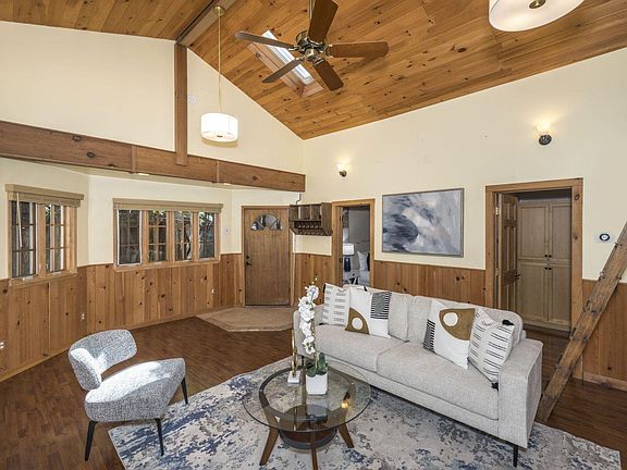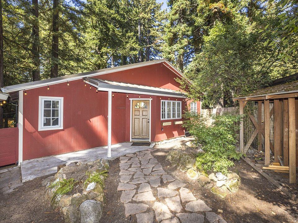 Welcome to this charming Woodside home, cradled amongst a cathedral of Redwood trees, and loaded with character. Enjoy the relaxing ambiance of this home, featuring Pella windows, vaulted wood ceilings, skylights, and pine wainscoting. With the perfect balance of updated convenience and country charm, this lovely home boasts an open kitchen with an adjacent dining nook, a loft perfect for storage, guests, or office, and a living room with vaulted ceiling, perfect for curling up by the wood burning stove. Outdoor eating area, flagstone patio w/arbor, built-in benches, large shed, extra storage, detached garage
