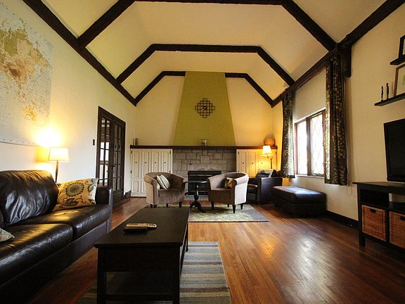 Classic, elegant and timeless all brick Tudor located in the charming neighborhood of Crescent Hills. Beautiful architectural details, cozy yet spacious home with hard wood floors and wood-burning stone fireplaces. Impressive living room with cathedral ceiling, wood beams and bookshelves on either side of the fireplace. Recently updated bathrooms, kitchen, electrical, plumbing and HVAC. All Pella wooden double-pane windows. Plenty of storage and fully insulated attic. Beautifully landscaped and level front yard with plenty of parking. Cement drive leads through a gate and wraps around the back to the garage and additional parking. Landscaped and fenced-in back yard with old growth trees. Patio and large deck looks out over the lower yard and into the woods. Must see this hidden gem!