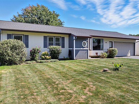 Picture-perfect ranch in a sought-after Greece neighborhood! Open and bright kitchen features solid surface countertops, stainless appliances, and a peninsula leading to the dining area. The living room has a bay window, and beautiful new flooring that extends to the dining and kitchen area. 3 large bedrooms, including the primary with an attached half bath. Updated and large hall bath. Lower level BONUS living with over 500sqft of professionally finished space including a full bath, laundry room, and plenty of storage room. Backyard Oasis! Large 2-tier deck, above-ground pool, and an enormous fenced-in yard with a shed. NEW roof in 2019, Central AC in 2019, hot water tank in 2022, low maintenance vinyl siding & windows. Nothing to do but move in! First showings Thursday 9/18 at 9am, all offers reviewed Monday 9/22 at 12pm.