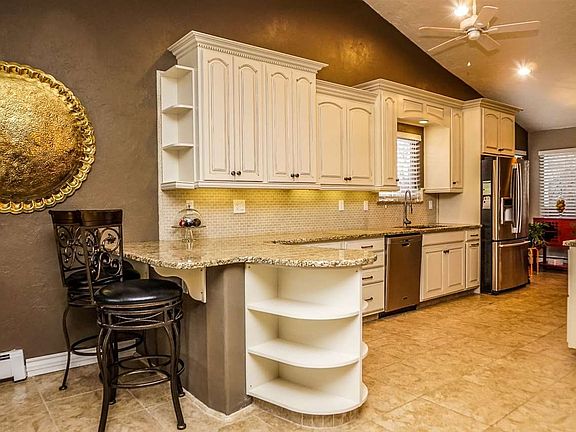 Palisade Gem! 3 bedrooms, 2 remodeled baths on main level, and a Bonus 18x21 loft!! Stunning new kitchen w/maple glazed cabinets, dovetail soft-close drawers, pull-outs, solid granite counters, stainless appliances, 2 ovens, barstool area, & a pantry! New travertine tile & bamboo floors. Spacious living room w/fireplace. Master retreat has walk-in closet, private bath, & patio door. 2238 sq ft home. Stunning views from the pleasant patios both back & front. Brand new 30-yr roof! Corner lot. Fenced yard w/irrigation. 2-car garage. RV parking. No HOA!