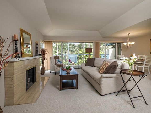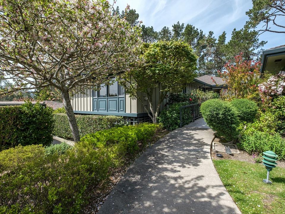 Senior community 55+ located at mouth of beautiful Carmel Valley but with Carmel address,this life style will not disappoint. Features lovely mountain views, fireplace and a peaceful spot within complex. Location offers solitude with nearby clubhouse dining, pool, gym, bocce ball, putting green. List of amenities goes on and on for the 289 units at Del Mesa. This F Model does not have any stairs to the unit or inside. Has recently installed new shower plus all new tile floors in both baths and kitchen. The interior walls have been recently painted as well and carpets professionally cleaned. Kitchen appliances are newer stainless steel. There is a lovely rear deck perfect for potted gardening and afternoon tea or a delicious cocktail. This unit shows well and is priced to sell. Come claim your spot in your golden years at Del Mesa Carmel.