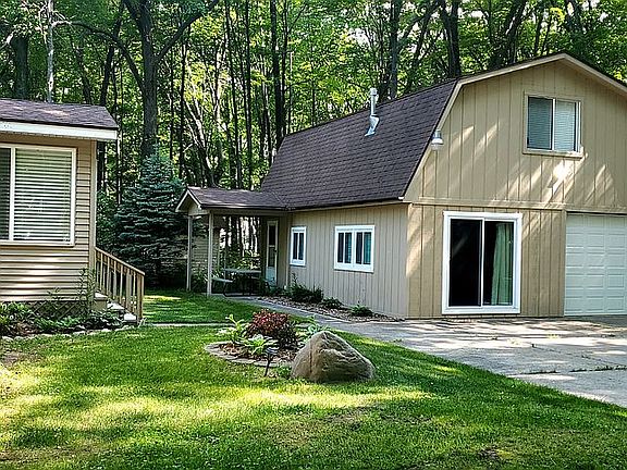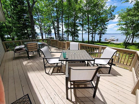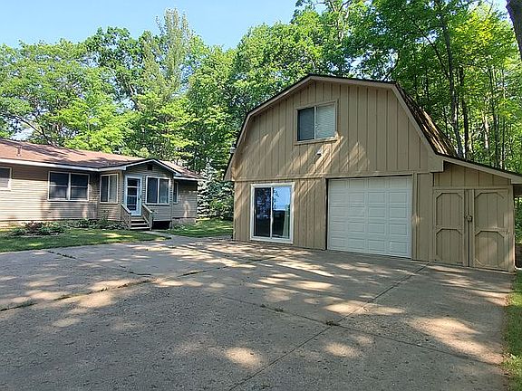 Beautiful, fully furnished, home for sale with 112’ of private lakefront and 1135’ of wooded acreage (2.44 acres total). The main house and ¾ finished barn can sleep up to 15-18 people! The main house is 1,172 sq ft includes an updated kitchen with eat at bar and dining area, spacious living room (with two sleeper sofas) with a spectacular view of the lake, two bedrooms with 1.5 baths, laundry, small enclosed porch, large deck (on lake side) and basement for storage. One car, barn roof garage with shed. MUST SEE ADDITIONAL LIVING SPACE IN BARN! Finished side of the barn is approximately 780 sq ft of living space. Barn includes a 1st floor full kitchen, small living/dining space and half bath. The 2nd floor of the barn includes, beautiful knotty pine ceilings, loft bedroom, ¾ bath and additional bedroom with 4 beds. There is a long private drive with the option to split for future construction. Conveniently located approximately 10 minutes from Prudenville for shopping. One of the largest large from properties in the area.