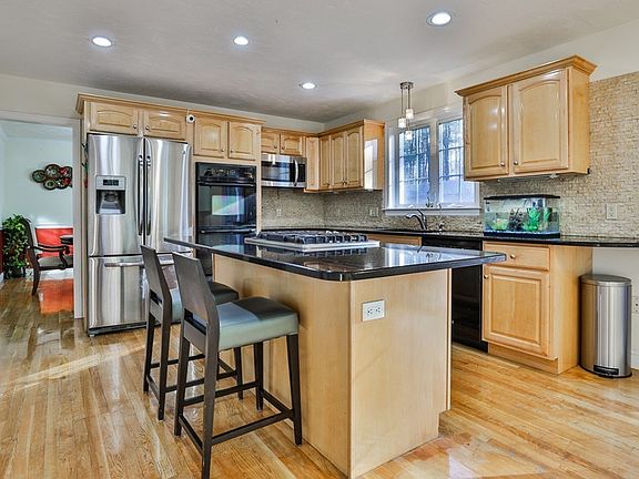 Spacious modern colonial with farmers porch sits on this bountiful 5.5 acres in a neighborhood of similar homes on a private loop. The first floor offers a spacious kitchen opening to generously sized family room with gas fireplace, elegant dining room, living room with gleaming hardwood floors and home office. Bright two-story foyer leads to four large bedrooms including a master bedroom with large walk in closet and extra storage space, master bath with jetted tub and full bath on the second level. Many thoughtful updates include new gas cook top, new carpet in family room, new central heating and hot water heater (see list of all improvements). Large basement with plenty of storage and potential to finish. This property borders a conservation trail system and is not far from the Ryan playing fields, town center, schools, Bare Hill Pond and commuting routes.