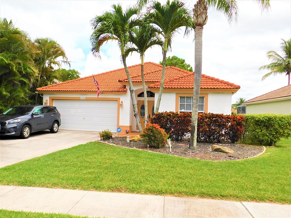 HERE IT IS! THIS CLEAN 3 BEDROOM 2 BATH 2 CAR GARAGE HOME WITH A LAKE VIEW IN ROYAL PALM BEACH IS WAITING FOR YOU! HOME OFFERS DOUBLE DOOR ENTRY, TILE THROUGH OUT WITH WOOD LAMINITE IN THE BEDROOMS. KITCHEN HAS GRANITE COUNTER TOP AND WOOD CABNITES, ALL STAINLESS APPLIANCES, LARGE UNDER MOUNT SINK, TILE BACK SPLASH AND BUILT IN WINE COOLER. MASTER BATH HAS DOUBLE SINKS WITH MARBLE TOP AND WOOD CABNETS AND LARGE WALK IN SHOWER AND TWO WALK IN CLOSETS, HUGE BACK COVERED SCREENED PATIO FOR ALL THE FAMILY GATHERINGS WITH A FENCED YARD. ALL THIS AND MUCH MUCH MORE!