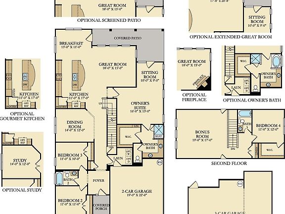 This beautiful two-story Dorchester combines elegance and comfort. At its heart is a first-floor family room flowing into a chef’s kitchen with a huge island and a breakfast room with a door to the covered patio. A formal dining room is ideal for memorable meals. Three bedrooms including the owner’s suite are situated on this floor. Upstairs are a bonus room and a fourth bedroom, and added study on the first floor as well.