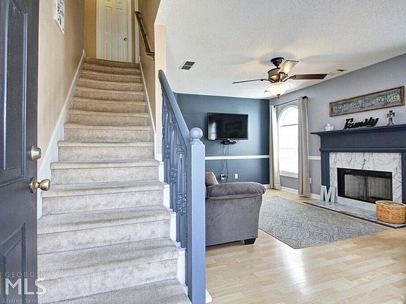 - Interior: Foyer - Entrance, Double Vanity, Gas Logs, Pulldown Attic Stairs, Separate Shower, Tile Bath, Carpet