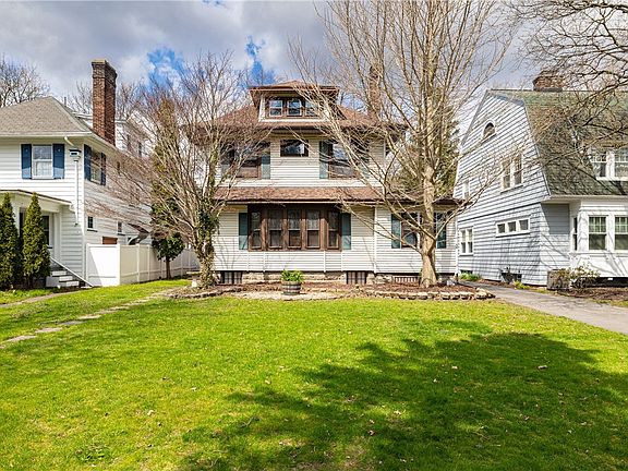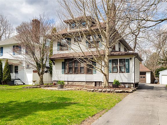 You will FALL IN LOVE w/ This STYLISH & CHARMING 3/4 Bedroom 1.5 Bath EXTREMELY WELL CARED FOR Colonial ***IN THE HEART of THE HIGHLY DESIRABLE BROWNCROFT NEIGHBORHOOD*** w/ ENCHANTING ARCHITECTURAL DETAILS THROUGHOUT!! This GORGEOUS HOME offers: CAPTIVATING SIDE ENTRANCE FOYER w/ BEADBOARD CEILING & SHOE BENCH, SHINGLE STYLE step up entrance into 1st floor offering: HUGE LIVING ROOM w/ WOOD BURNING FIREPLACE & LOVELY, EXPANSIVE BAY WINDOW, attached OFFICE SPACE w/ WINDOWS ALL AROUND (currently being used as a work out room), YOU NEED TO SEE ***THE COZY LIBRARY*** w/ BUILT-INS & LEADED GLASS FRENCH DOORS!! The BEAUTIFULLY UPDATED KITCHEN has GRANITE COUNTER TOPS, STAINLESS APPLIANCES, PERIOD TILE FLOORING & OPENS into The Formal Dining Room w/ GAS FIREPLACE & offers access to THE PRIVATE BACK YARD AREA w/ DECK & GREEN SPACE – PERFECT for ENTERTAINING – The 2nd Floor has 3 Bedrooms, which includes the LARGE PRIMARY BEDROOM w/ WALK-IN DRESSING ROOM. There is another small room w/ toilet (the door to that room is behind the walk-in closet’s hanging rack). The current owner does not use it, but it is perfect for someone who would like an additional bath (as the plumbing is already in place), Bedroom 2 has a LARGE CLOSET & attached SLEEPING PORCH & Bedroom 3 is WELL PROPORTIONED & also has a LARGE CLOSET. The 2nd Floor also has a TASTEFULLY UPDATED, PERIOD, FULL BATH. The 3rd floor (not included in square footage) is a WONDERFULLY FINISHED AREA***PERFECT FOR ANOTHER OFFICE, MEDIA ROOM OR POTENTIAL 4th BEDROOM*** Also has a 1 Car DETACHED GARAGE- UPDATES INCLUDE: TEAR OFF ROOF (2021), HVAC (2017), WATER HEATER (2024), NEW DISHWASHER (2025) & MORE!!! HISTORIC TAX CREDITS AVAILABLE FOR IMPROVEMENTS MADE as the property is in The Historic Browncroft Neighborhood (it is ***NOT*** in a Preservation District, so no need to go to the Preservation Board for Alterations - The BEST of both worlds) - SHOWINGS START WEDNESDAY 4/23 & OFFERS DUE WEDNESDAY 4/30 @ NOON–SEE VIDEO–