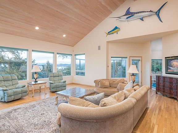 One of Salishan's finest ocean view homes situated over the 14th hole. Simply breathtaking, this home will not disappoint. Every inch of this custom home is designed to offer light, maximum views and privacy. Huge panes of glass capture the essence of Salishan, where the course greens meet with the blue of the Pacific and Siletz Bay. Chef's dream kitchen with gourmet appliances and great