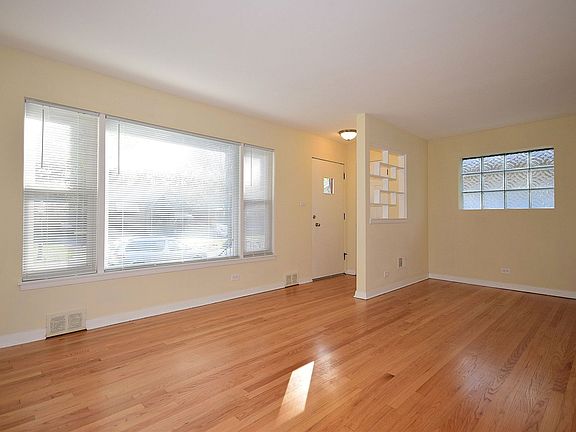 Brick raised ranch in excellent condition features two bedrooms, forced air, central air, updated eat-in-kitchen with microwave, dishwasher, stove and refrigerator, full unfinished basement, refinished hardwood floors, washer and dryer on premise, fenced yard, side drive with garage plus more. Walking distance to transportation, schools, and shopping. Near Loyola and Mac Neal Hospital. Great Location! Will consider a short term lease. Agent Owned