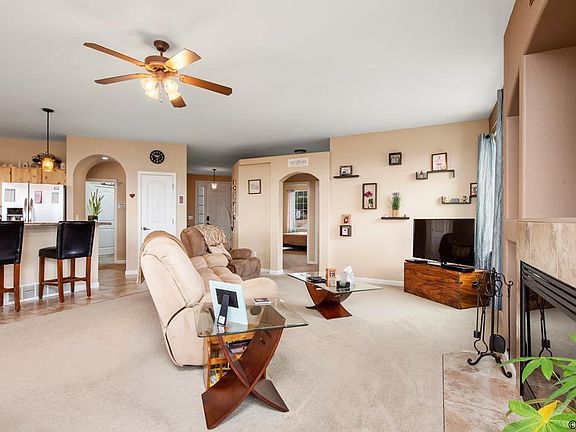You'll love this gorgeous rancher featuring 6 bedrooms, 3 baths, and 3 car garage. Open kitchen with beautiful cabinets, attractive tile floor, newer appliances, and great breakfast bar. Living room has a fireplace. Big master suite with walk in shower, nice soak tub, walk in closet and his and her sinks, Main level laundry for convenience and includes newer Washer & Dryer. The walkout basement does not feel like a basement - many windows to let in light, fully finished, three large bedrooms with walk in closets, a full bathroom, family and rec room for your enjoyment. Back yard has a fire pit and horse shoe pit. New roof, gutters, down spouts. All doors, fascia and soffit repainted. Wood on deck has been replaced, stain and sealed. 8 windows have been replaced.