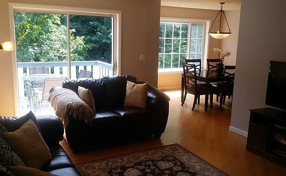 End unit with Eaton floor plan in Eagle Ridge. Private and tranquil setting. This well maintained property offers lots of extras. Hardwood floors throughout the living areas, walkout basement with porcelain tile floors, New kitchen appliances installed in 2015. New washer and dryer installed in 2016. Large loft area on second level. Master with en suite bathroom. Large tub and towering vaulted ceilings with skylight. One car garage with driveway and plenty of guest parking. Clarkstown schools. Come and see what sets this unit apart from the rest.