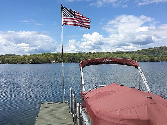 Waterfront on Lake Winnisquam Sunset view Attached boat house with rail system for indoor storage