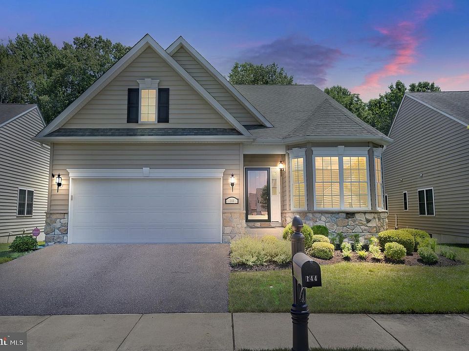 Beautiful home on a lovely premium homesite in the popular community of the Village of Eastridge. You will enjoy the fabulous, protected woodland view! There are many upgraded features in this stunning house. Hardwood floors throughout the main areas and tile in the bathrooms. The kitchen features 42 cappuccino cabinets with crown molding and custom hardware, granite countertops, with under mount sink and tile backsplash, with over and under cabinet lighting. Upgraded appliances feature Profile micro/convection and a gas slide in range. The dramatic 18 vaulted Great Room ceiling with custom clerestory window, brings beautiful daylight in, and also features a remote shade. There is a gas fireplace with glass enclosure and circulation air to keep you cozy on those chilly evenings. The sunroom is wonderful and opens to the 10x20 AZEK deck and the private open space, woodland scenery. Its a terrific reading room. The generous Owners suite has been extended and includes a cathedral ceiling and two separate walk-in closets! The en-suite bath includes a large dual vanity, separate windowed commode room and a floor to ceiling tiled shower with frameless glass enclosure. The guest room has a good size closet and is adjacent to the secondary bath. The Office/Study is located at the front of the home and includes a 4-window bay and lays out nicely as an office or optional seating area. There is a very comfortable laundry room with cabinets and there is no through traffic which makes it easier to manage. The just under 2,000 sf basement presents all sorts of opportunities for expansion and it includes the rough in for a full bath. The home has a tankless natural gas Rinnai water heater, security system, in-ground irrigation system, upgraded lighting fixtures, ceiling fans, flood lights and dimmer rocker switches throughout. There are custom window treatments throughout the home, including plantation shutters and honeycomb shades. Spend time with friends in the spectacular community club house with an exercise room, great room for card games and parties, wet bar and kitchen, and billiard room. Walking trails and sidewalks throughout the community. The home is ready for its new owners.