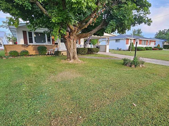 adorable ranch that has a nice quaint front porch for enjoying coffee or iced tea. Plus, it has a mature tree that shades the yard. Nicely landscaped. Spectacular fenced rear yard. Gazebo to stay, carport w/two huge storage sheds. Newer bath vanity, flooring. Living room is spacious and separate dining area. Laundry directly off kitchen.